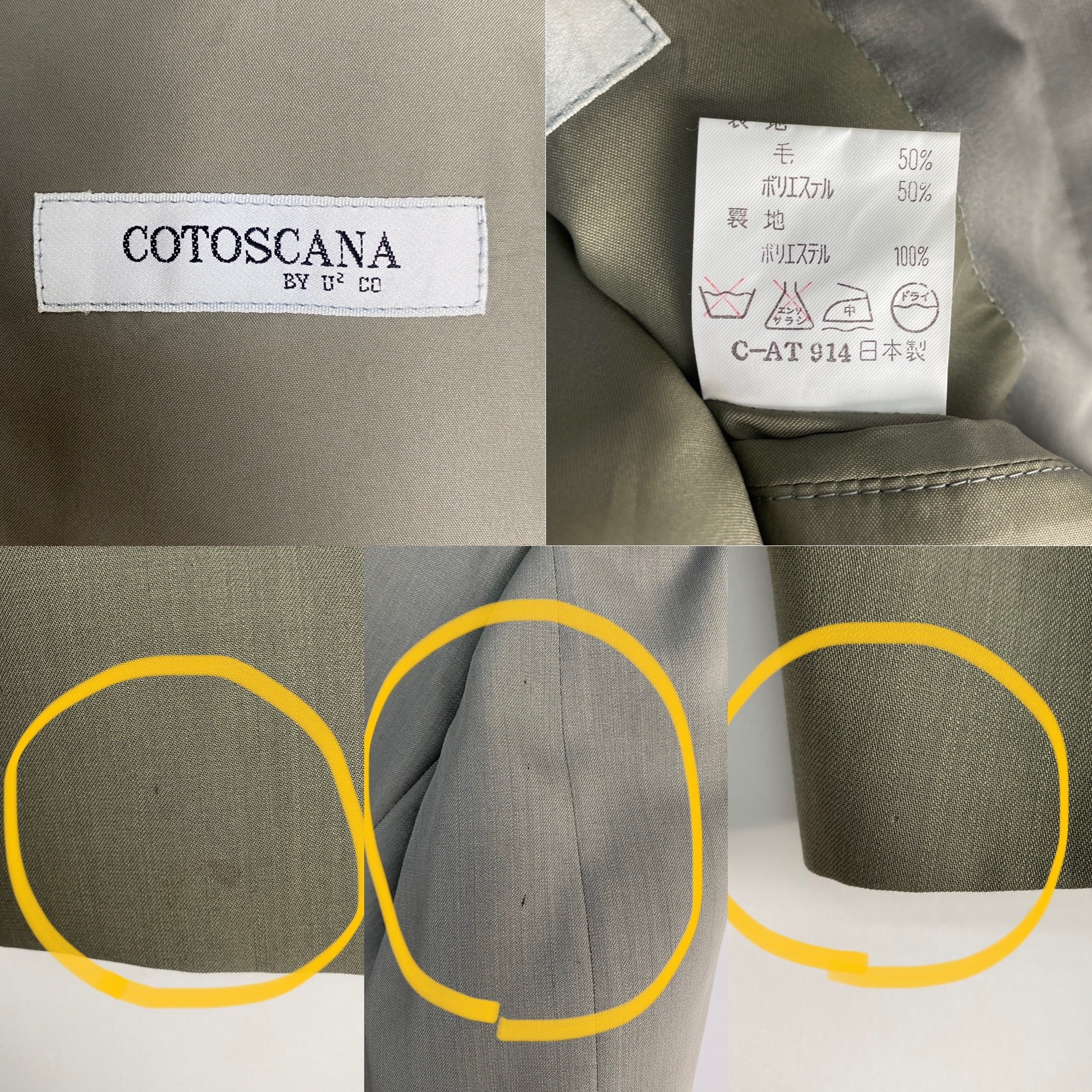 【状態】シミ・汚れ・穴・名前刺しゅうあり(写真を参考に)肩パッドあり